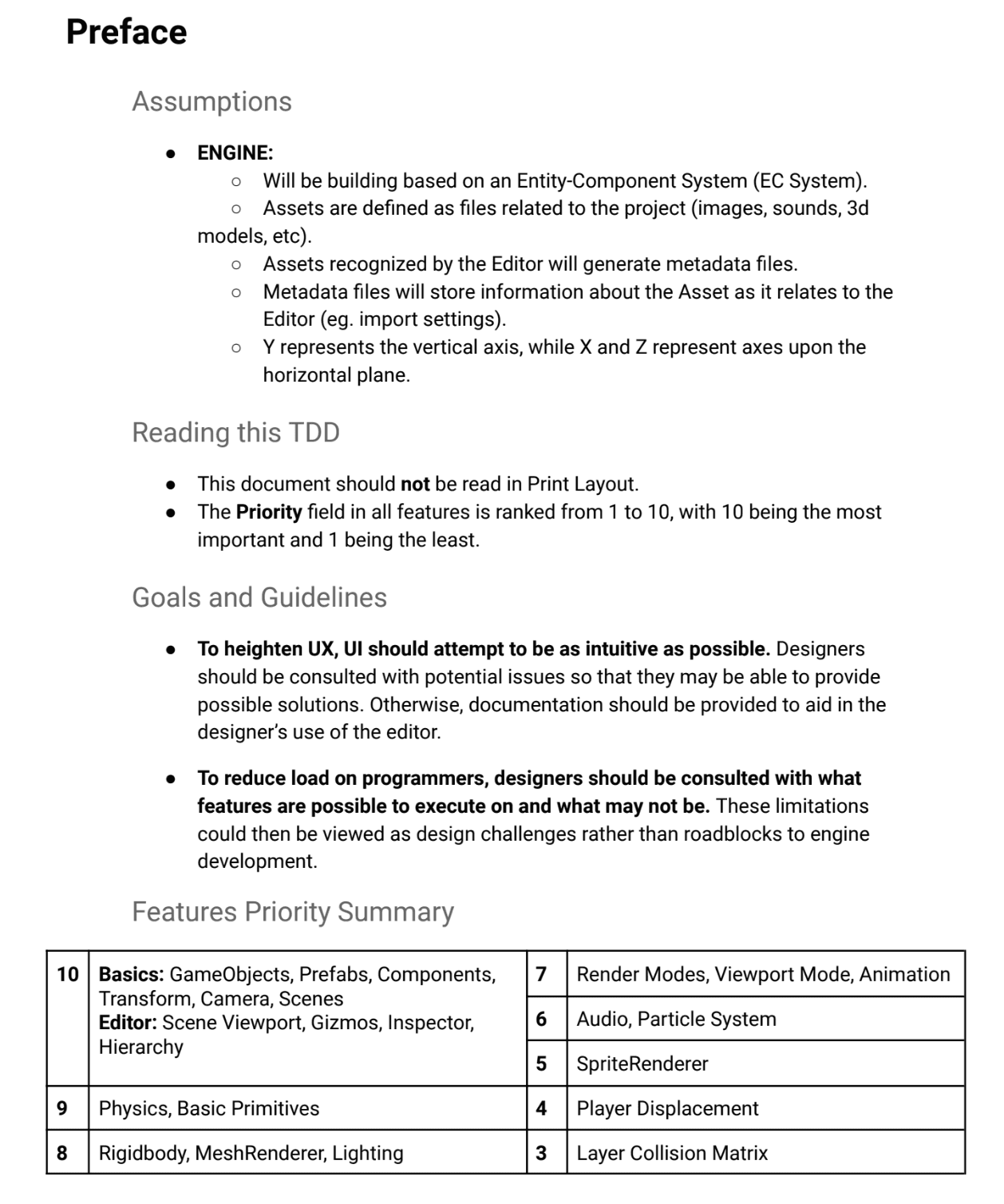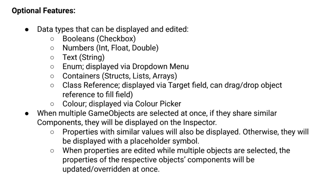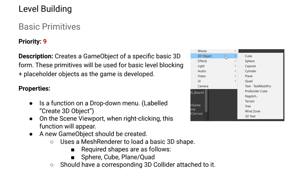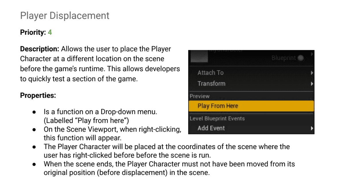I compared different commercial game engines when describing features to be implemented in a custom game engine's editor. Aspects of the specifications report were balanced between requirements and quality-of-life features.