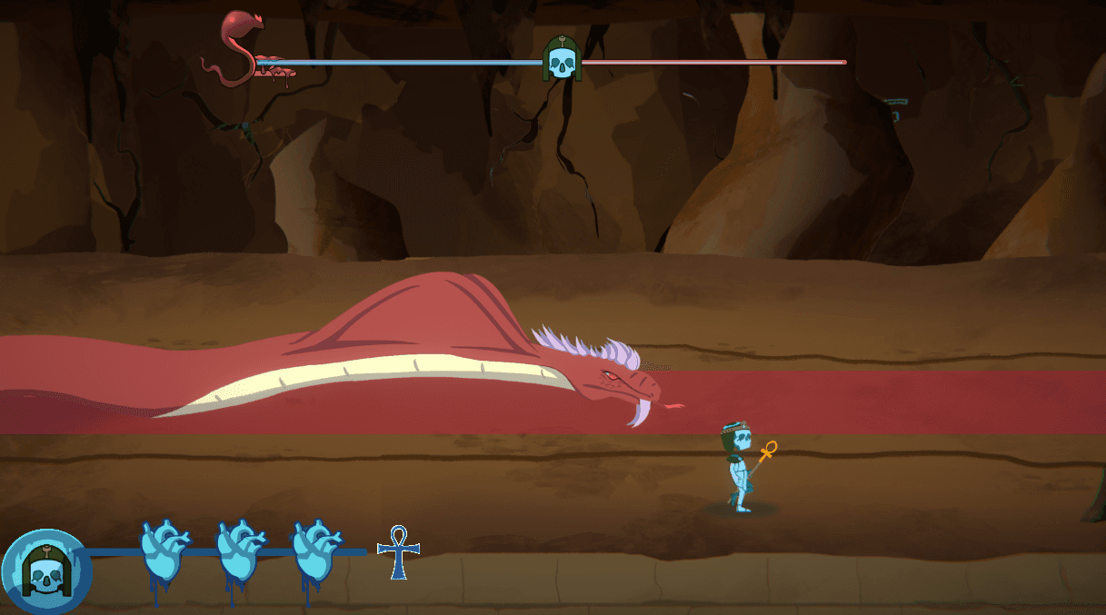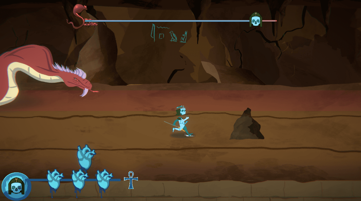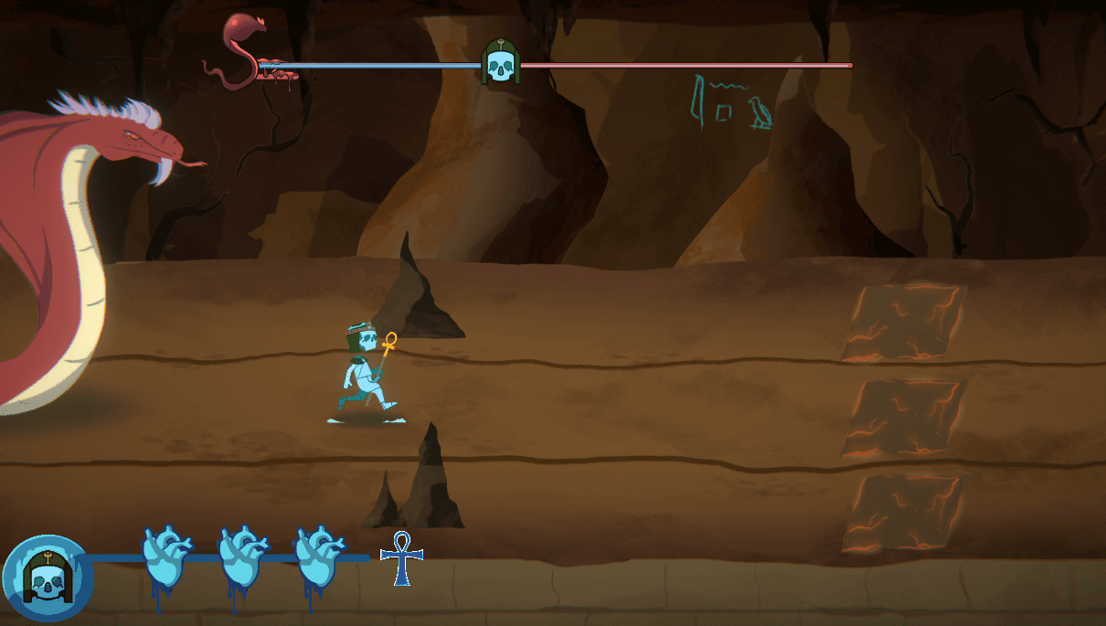 We first began by prototyping some ideas for what the gameplay would look like. Aside from upcoming obstacles, we wanted something more exciting visually and potentially challenging to the players. Hence, the introduction of Apep posed a great foe to the player with his presence.
