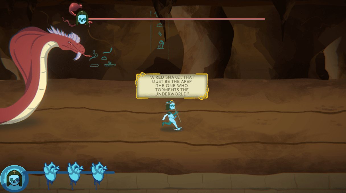 DUAT is an action side-scrolling runner game set in ancient Egypt, following the story of a recently deceased Pharaoh sent to the underworld. Her descent into Duat is seen as an anomaly, luring the attention of the monstrous snake Apep who looks to devour her soul whole. If she wants a chance to make it to the afterlife, she's going to have to outrun her new threats and seek an audience with Anubis, overseer of the underworld.