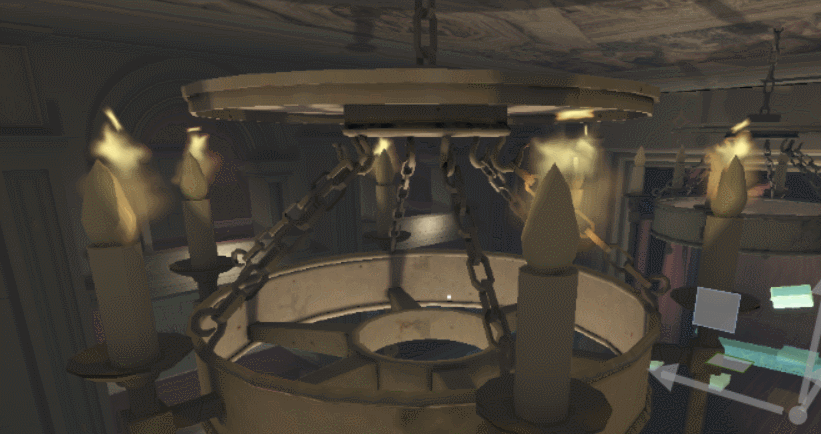 Once the Particles system was implemented in the H.U.M Engine, I was able to contribute by making visual effects for certain elements of the game, which included dust clouds, ceiling debris, electrical sparks, and the two depicted below (wisps, flame).