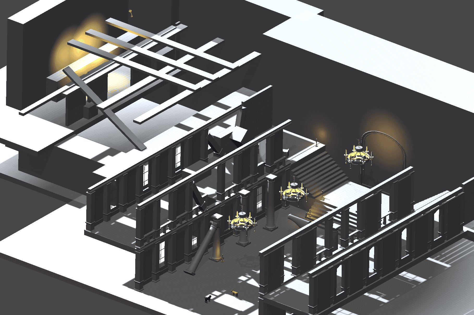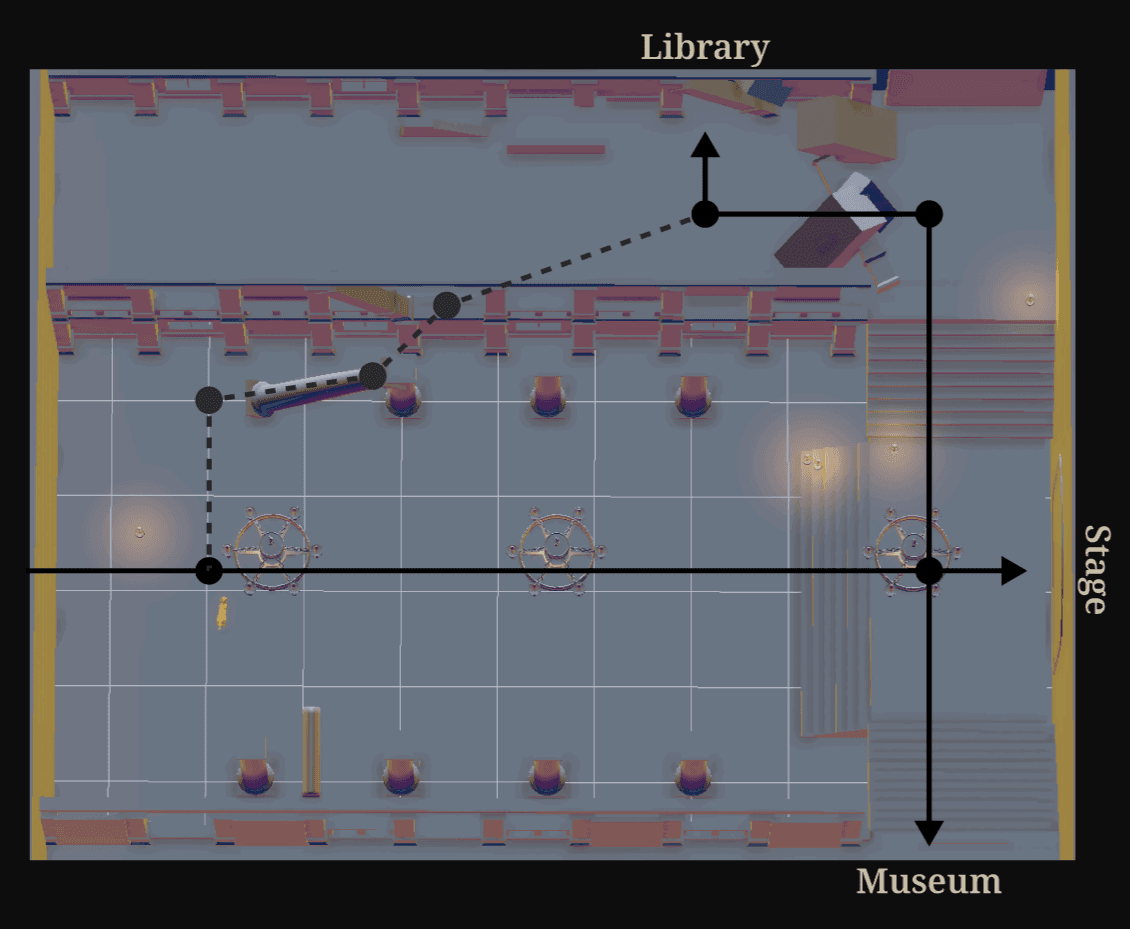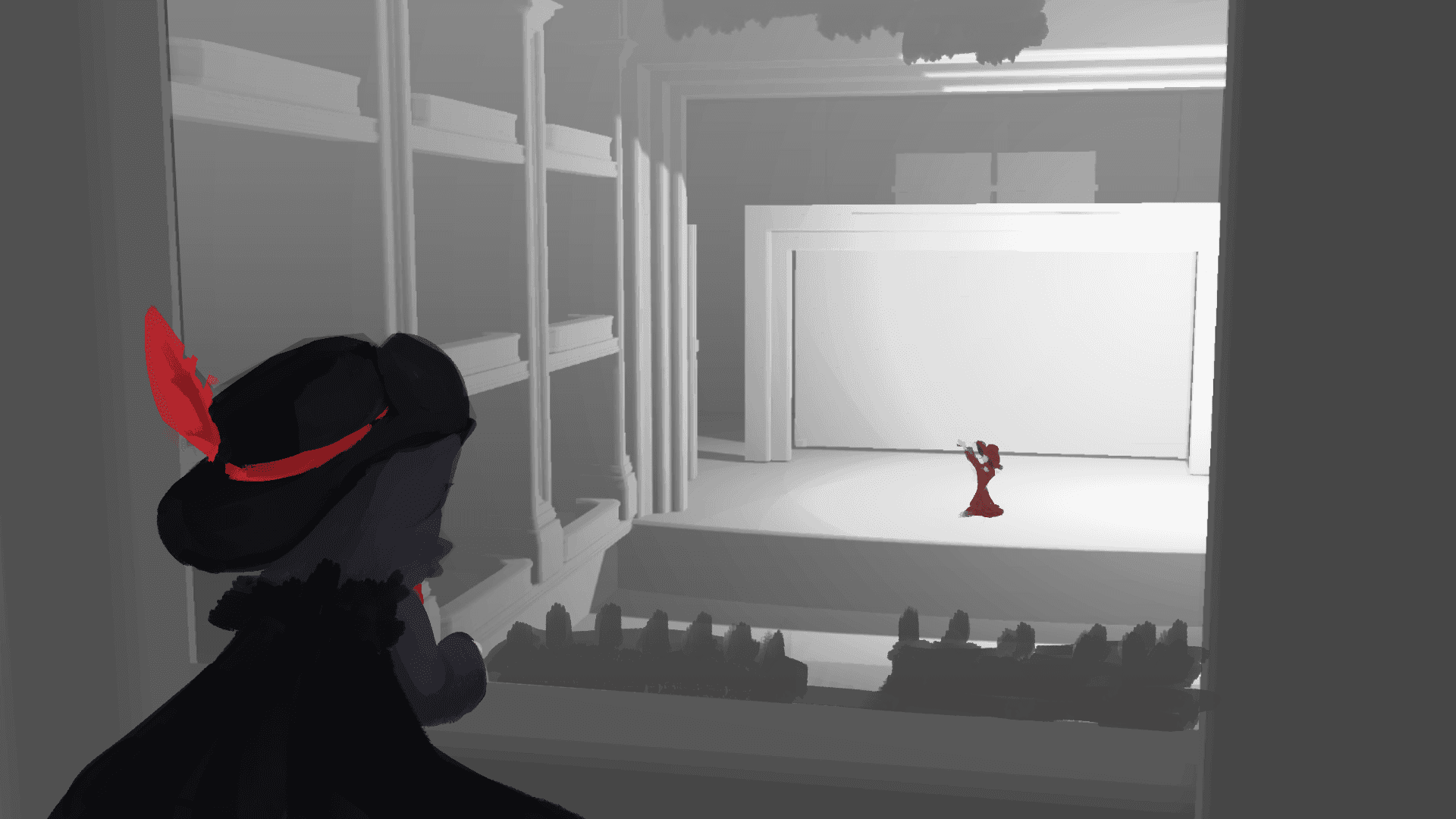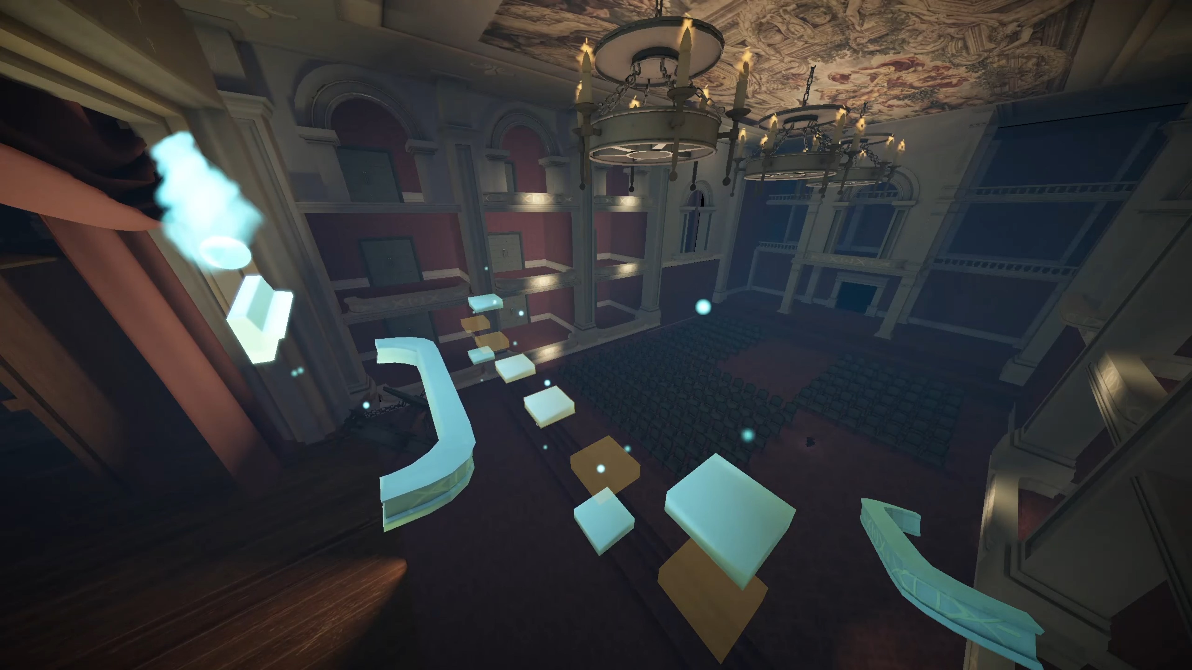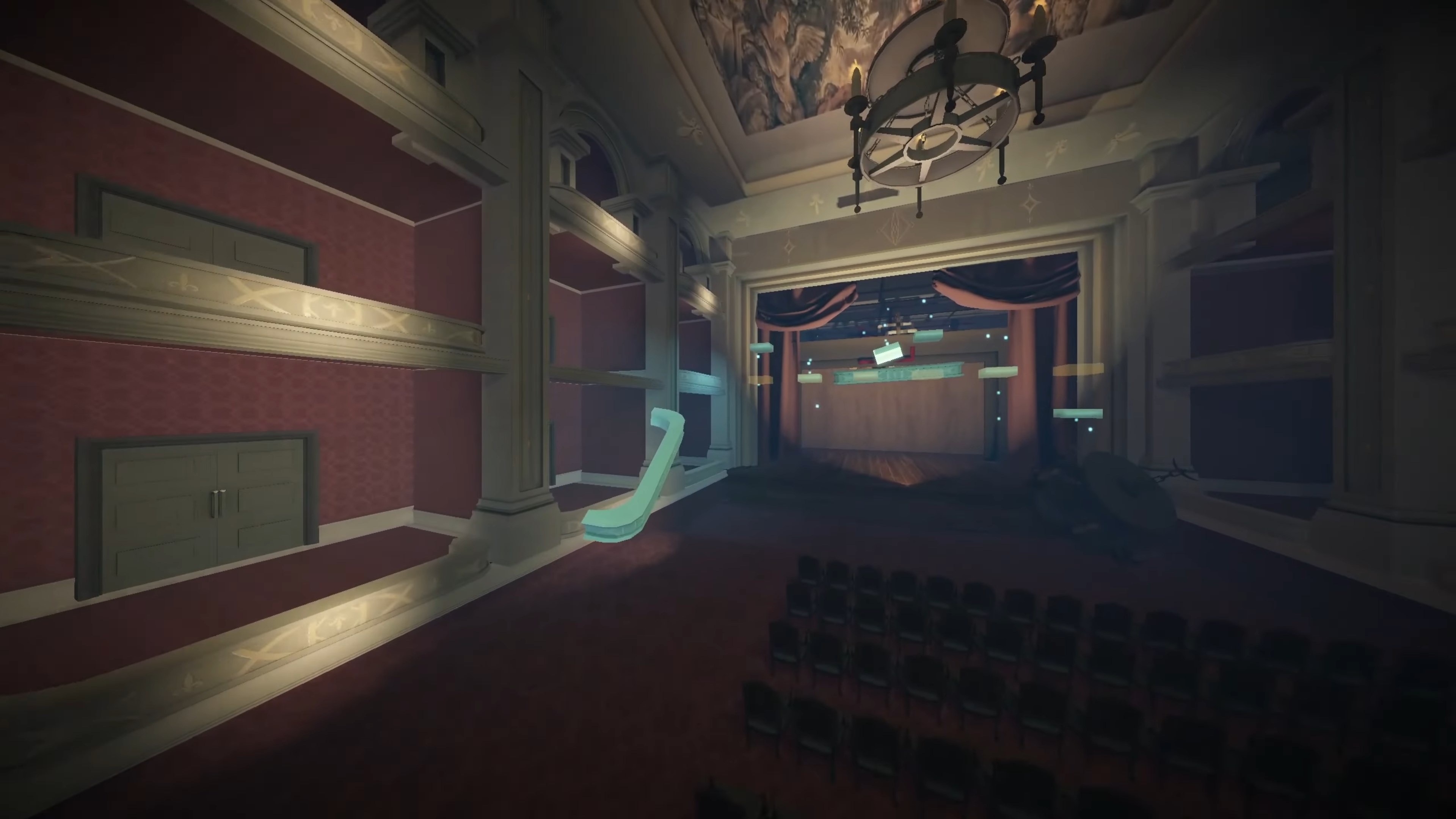 Our focus changed to facilitate the bulk of our game's play within a single level, so I worked on developing the Opera Hall, the core of the opera house.