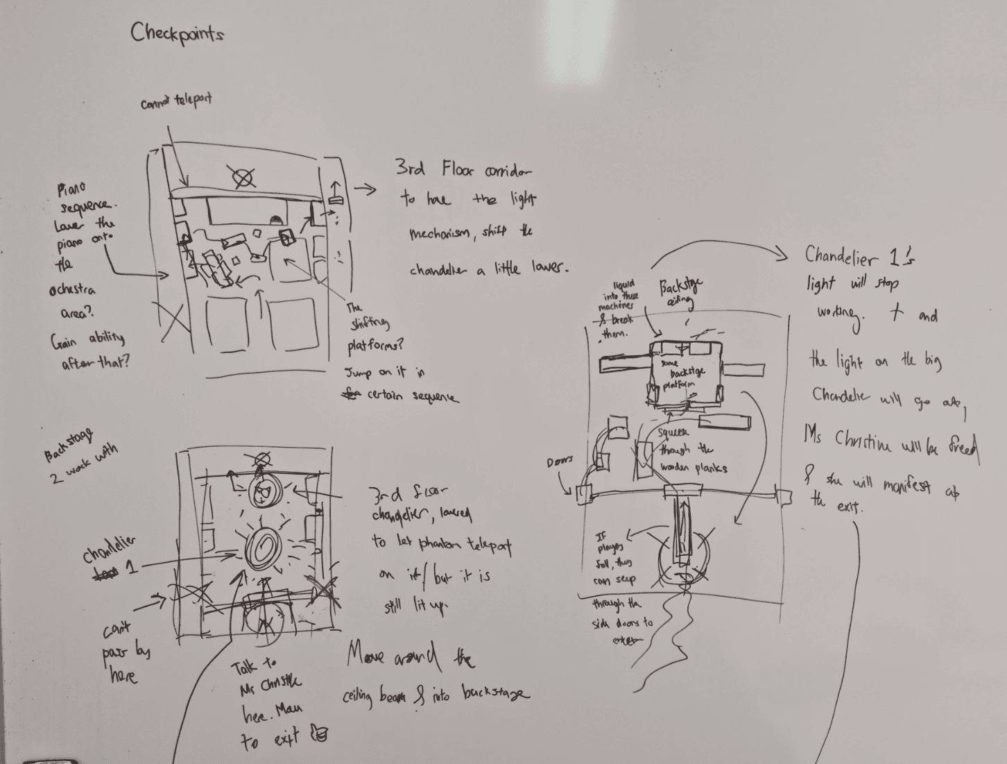 The top-down diagrams were initially drafted with whiteboard and marker before conversion to Unity assets, cleaned up for internal documentation.