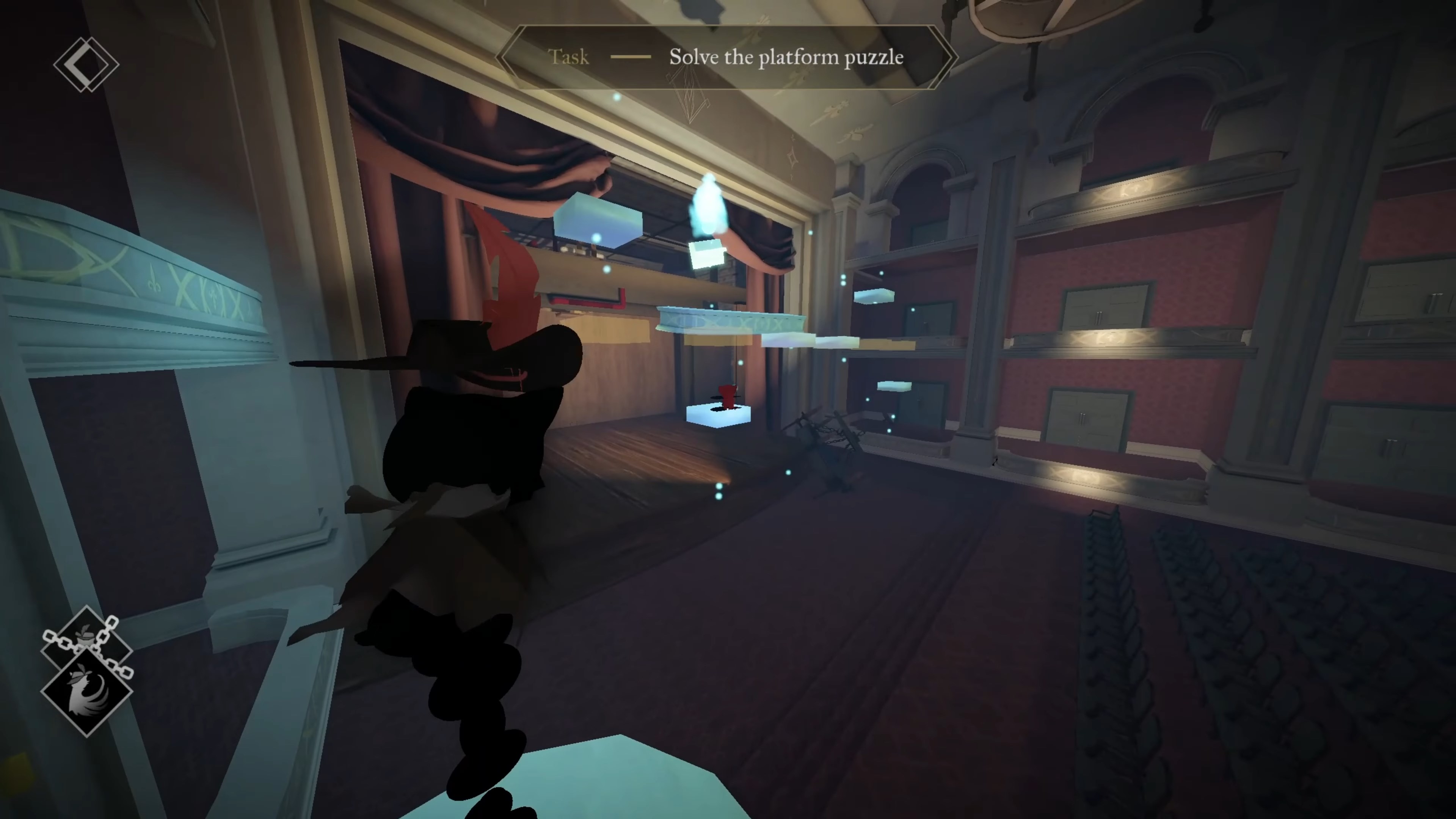 Was made to demonstrate the teleporting mechanic alongside the unlocking of several areas in a major game progression loop. Focus was set upon decor of the first area of the game, the Opera Hall entrance.