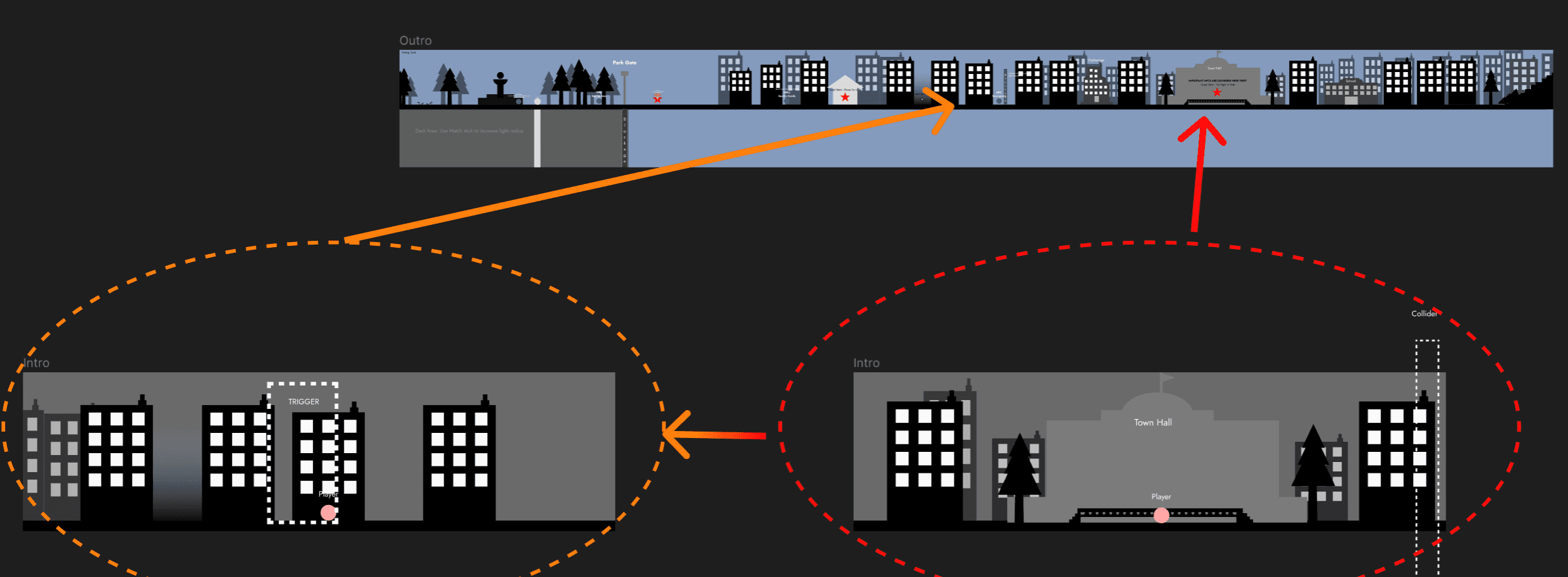 The designers of the team had planned out how the game's level would look like, alongside a time-passage cycle which would open up more of the level after certain actions.